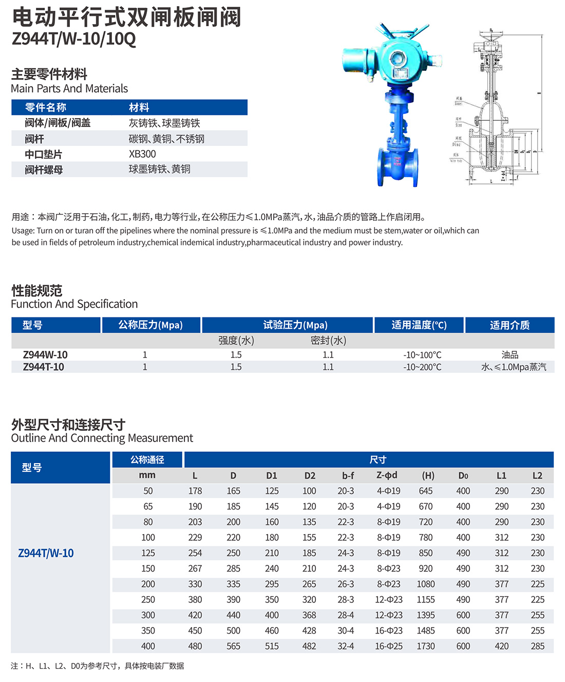 電動平行式雙閘板閘閥 Z944T/W-10/10Q